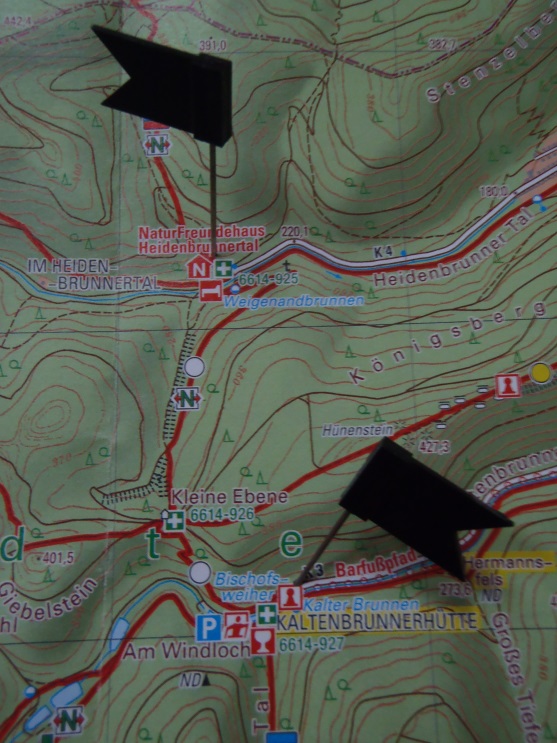 Höhepunkt der Kinder- und Jugendwanderungen war auch dieses Jahr wieder die Nikolauswanderung am 7.12.2014. Treffpunkt war der Wanderparkplatz an der Kaltenbrunner Hütte in Neustadt an der Weinstraße. Zahlreiche Familien waren mit Kind und Hund an die Kaltenbrunner Hütte gekommen. Von dort aus führte ein schmaler Waldweg mit kurzem steilem Aufstieg auf eine kleine Lichtung mit Wetterschutzhütte. Dort wurden anschließend die Familien vom Nikolausteam begrüßt. Kaum oben angekommen, ging es auch schon wieder an den 20-minütigen Abstieg, entlang eines alten Römerwalls zum Naturfreundehaus Heidenbrunnertal. Dort erwartete uns schon das Bewirtungstrio der Hütte. Hunger und Durst konnten aber rasch gestillt werden. Die Kinder konnten in einer Ecke Weihnachtsbaumschmuck bastlen oder Bilder ausmalen.