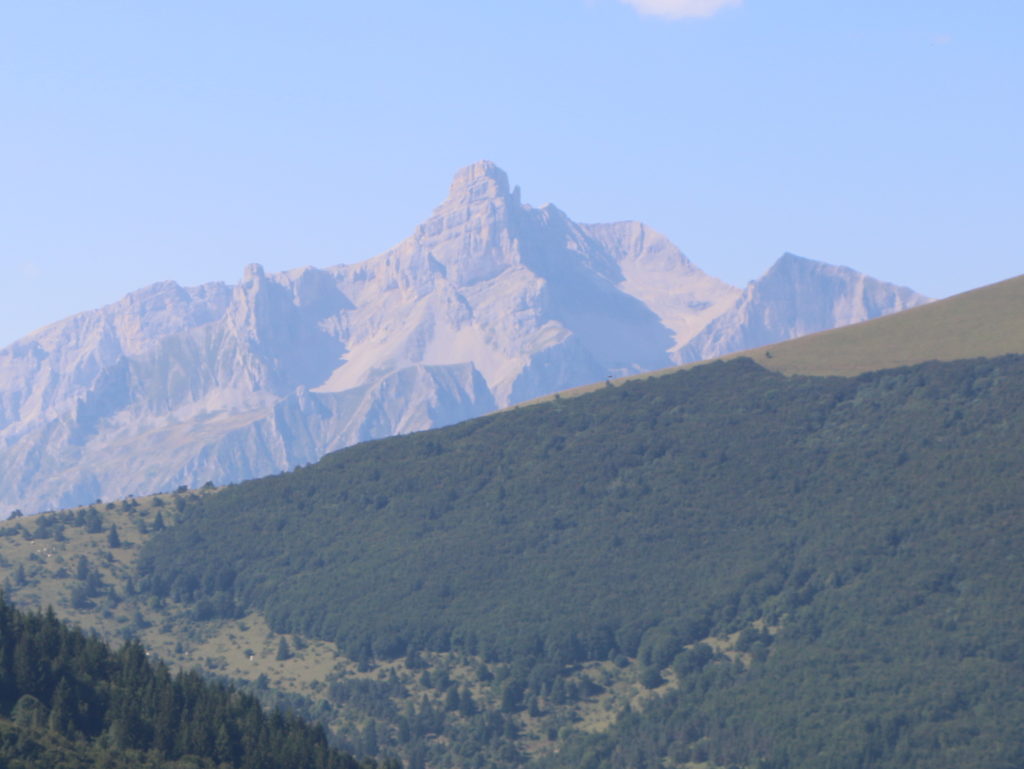 Über einen Gebirgspass fuhren wir in das benachbarte Tal mit einem großen Stausee, gelegen an dem Fluss „Le Drac“. Von einem Parkplatz auf diesem Pass hatten wir eine beeindruckende Aussicht. Im Westen hatte man einen fantastischen Blick auf die 40 km entfernten Berge Mont Aiguille (2087 m) und Grand Veymont (2341 m) – die wir bei der Jugendgruppenfahrt zwei Jahre zuvor bezwungen hatten - und im Süden thronte der Obiou (2789 m; franz.: Grande Tête de l'Obiou), der höchste Berg der Region und unser Ziel für den nächsten Tag.