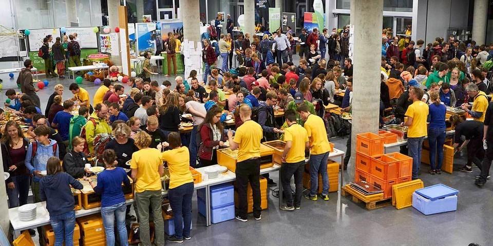 Samstagsmorgens ging es dann mit einem gemeinsamen Frühstück im Foyer der Uni los, kurz darauf versammelten sich alle im großen Hörsaal. Zur Begrüßung hielten Gäste wie der Oberbürgermeister der Stadt Darmstadt, Jochen Partsch, und der DAV-Präsident Josef Klenner eine Rede. Gegen Mittag wurden in verschieden Workshops diverse Themen diskutiert. Unteranderem wurde über die neue Mustersektionsjugendordnung (MSJO) beraten, in welcher der Kernpunkt die Mitbestimmung junger Menschen in der Sektion ist. Eine weitere Frage war, wie die JDAV dem Klettern bei Olympia 2020 in Tokio zum Thema Nachhaltigkeit und Strukturen der Leistungsförderung gegenüberstehen soll. Außerdem gab es Foren zu den Themen: Schwule und Lesben in Alpenverein, Bouldern, Nachhaltigkeit, sowie die JDAV - eine Heimat für Mountainbiker. Nach dem Abendessen, zu dem uns der Wormser Jugendleiter Stephan Tecklenburg besuchte, ging es weiter zum letzten Programmpunkt des Samstags: die Party im Schlosskeller. Dort trafen sich alle Teilnehmer um den Tag ausklingen zu lassen. Die Wormser Sektion verabschiedete sich um kurz nach drei Uhr morgens von der Party. Am nächsten Morgen ging es um neun Uhr im Hörsaal mit dem parlamentarischen Teil weiter. Es wurde die neue, am Vortag überarbeitete, Mustersektionsjugendordnung beschlossen. Des Weitern wurden die Bildungsziele der JDAV der neuen MSJO angepasst und zum Schluss wurde die Bundesjugendleitung neu gewählt. In zwei Jahren trifft sich der Bundesjugendleitertag dann in Nürnberg wieder.