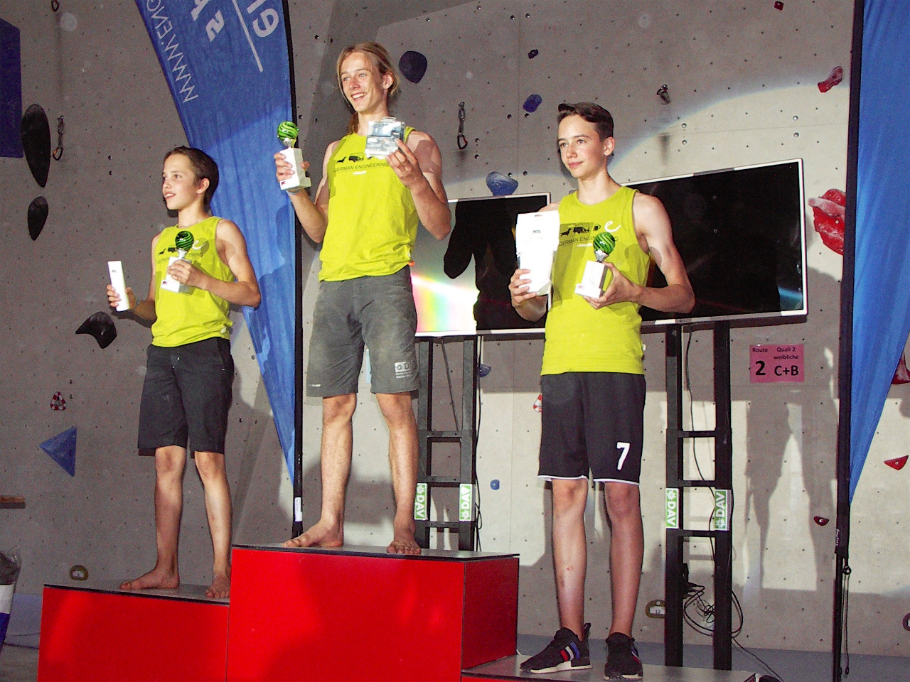 Die Athleten vom DAV-Worms erkämpften gleich zwei Treppchenplätze am Samstag bei den offenen Landesmeisterschaften im Leadklettern in Frankenthal. Simon Kolb holte sich in der B-Jugend nach einem spannenden Finale den Landesmeistertitel und Till v. Bothmer ergatterte in der C-Jungend den Vizemeistertitel. Vincent v. Bothmer verpasste mit Platz vier in der Landeswertung bei den Herren knapp den Sprung aufs Treppchen.